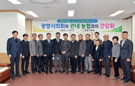 이날 간담회에는 서영배 의장을 비롯한 시의원들과 농협중앙회광양시지부장, 지역농협 조합장(광양, 동광양, 광양동부, 진상, 다압, 광양원예) 등 20명이 참석했다.