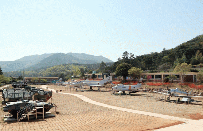 2018년 5월 1일 개장한 밀리터리테마파크는 기존 호담항공우주전시장과 연계하여 우리나라 군대 역사와 문화에 대한 전시, 교육, 체험을 동시에 공유할 수 있는 곳으로, 육해공 무기전시장, 호국안보전시관, 시뮬레이션 체험장, 야외 교육장 등을 갖추고 있다.