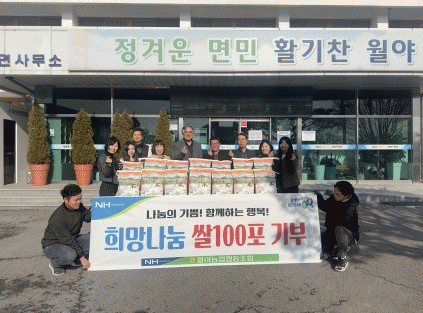 월야농협 정상진 조합장은 “이번 기부를 통해 월야면 주민들이 따뜻한 새해를 맞이할 수 있기를 바란다.”고 전했다.