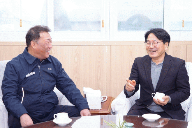 또 셀토스?쏘울 등을 생산하는 1공장을 둘러보며 글로벌 생산공장으로 발돋움한 기아에 큰 성원의 뜻을 전했다. 이어 노조사무실에 들러 은용철 노조위원장 등을 만나 노사화합 성과를 격려했다.