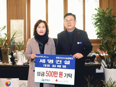 세명건설은 이번 기탁뿐만 아니라 지역의 어려운 이웃들을 위해 홍농읍 나눔 냉장고를 통해 삼계탕, 생필품, 염색약 등 다양한 물품을 꾸준히 지원하고 있으며, 어버이날에는 홍농읍에 거주하는 홀로 사는 어르신을 위해 카네이션 지원하는 등 나눔과 봉사를 몸소 실천하는 기업이다.