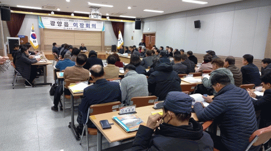 이날 회의는 시의원, 신임이장, 직원 등 80여 명이 참석한 가운데 신임이장 임명장 수여, 시정 및 읍정 현안 설명, 건의사항 수렴 등 순으로 진행됐다.