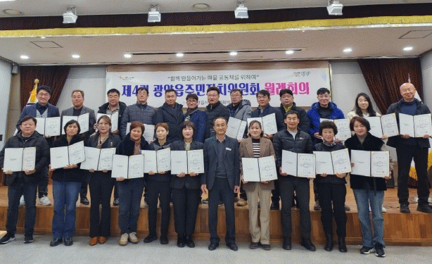 새롭게 임기를 시작하는 제4기 광양읍 주민자치위원회는 총 28명의 위원(남 16명, 여 12명)으로 구성됐으며, 오는 2025년 12월 말까지 광양읍 주민의 문화생활 향상과 복리 증진, 지역공동체 형성을 위해 활동할 예정이다.