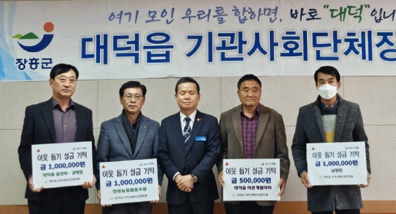 이영철 대덕읍장은“이웃 사랑 실천에 앞장서주신 기관사회단체와 대표님께 감사드린다”며“꼭 필요한 곳에 소중하게 쓰일 수 있도록 최선을 다하겠다”고 전했다.