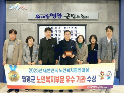(사)한국노인복지중앙회에서 주관하는 '2023 대한민국 노인복지증진 대상'은 노인복지에 기여한 지자체에 주어지는 상으로, 영광군은 전국 최초 시행한 사회복지시설 종자자 및 요양보호사에 대한 처우개선 수당 등의 노력이 심사위원들로부터 높은 점수를 획득하여 수상의 영예를 안게 됐다.