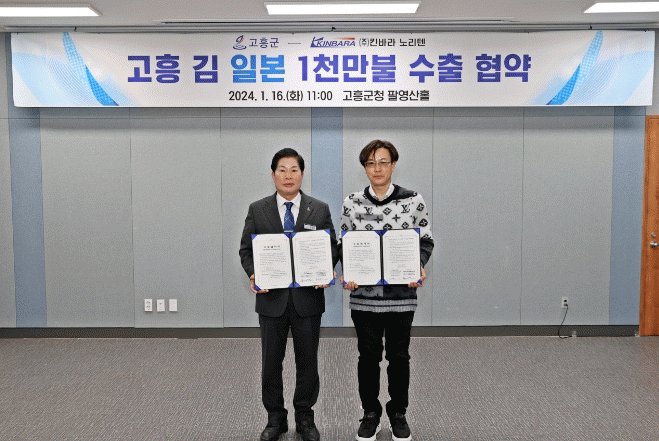 이번 수출협약은 고흥군-일본 ㈜킨바라노리텐의 지속적인 교류 및 협력체계를 통해 고흥 김의 일본 수출 및 일본 내 유통 확대를 위해 이루어졌다.