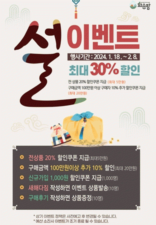댓글 이벤트는 화순팜 이벤트 게시판에 갑진년 새해 다짐을 작성하면 10명을 선정하여 3만 원 상당의 화순팜 상품을 지급한다.