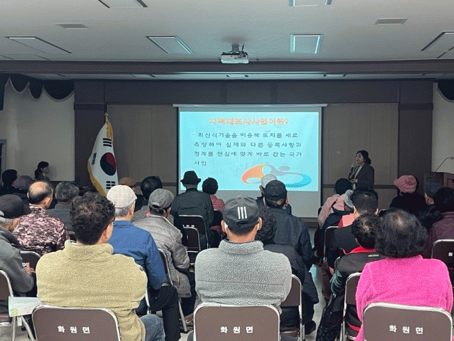 주민설명회에서는 지적재조사사업의 필요성과 사업 절차, 경계 설정 기준과 조정금 산정 방법, 토지소유자협의회 구성 등을 설명하고 주민들과 질의응답 시간을 가졌다.