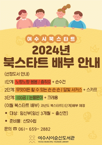 1단계 스타트 꾸러미는 올해 출생아를 대상으로 읍·면·동 주민센터에서 출생신고를 통해 받을 수 있고 2단계는 19개월부터 35개월의 유아들 대상, 3단계는 36개월부터 만7세 미취학 어린이들이 대상으로, 2·3단계는 시립도서관 7개관(이순신, 쌍봉, 현암, 환경, 돌산, 소라, 율촌)에서 받을 수 있다.