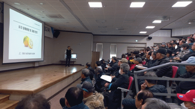 교육 강사인 윤영복 농업기술센터 연구사는 시기별 중점 재배 기술 및 동해 피해를 줄이는 방법, 병해충 방제 등 올해 농가 소득이 증대될 수 있도록 유자 과원 현장 기술지도 사례를 중심으로 교육했다.