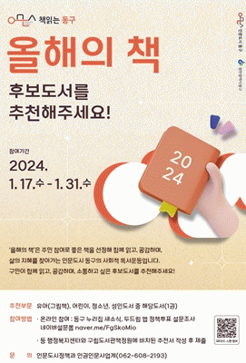 ‘올해의 책’은 지난 2020년부터 인문도시 동구에서 책으로 소통하며 개인과 공동체 삶의 질을 높이기 위해 추진해 온 사회적 독서 운동이다.