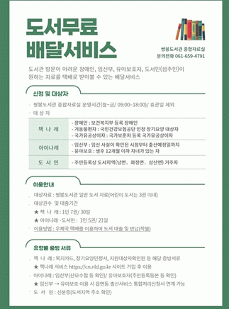 이용 대상은 장애인, 임산부, 유아 보호자, 섬 주민 등으로 원하는 도서를 집까지 택배로 받아볼 수 있다.