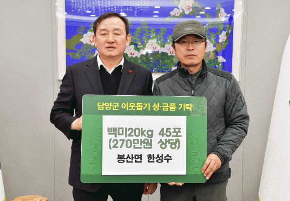 이병노 담양군수는 “어려운 경제 여건에도 지역사회 소외계층을 위한 나눔의 손길을 내밀어주셔서 감사하다”며 “관내 어려운 이웃에게 소중히 잘 전달하겠다”고 전했다.