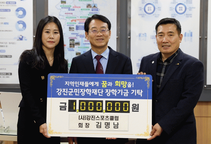 김명남 회장은 “강진군민으로서 지역에 보탬이 되기 위한 취지로 장학금을 기탁했다”며