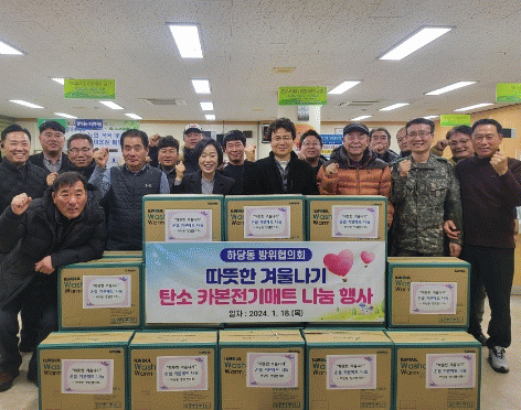최혜강 하당동장은 “주민들이 따뜻하게 겨울을 보낼 수 있도록 신경 써주신 방위협의회 회원님들께 감사한 마음을 전한다”며 “앞으로도 우리 주변에 소외된 이웃이 없게 꼼꼼히 살피도록 하겠다”고 말했다.