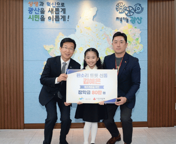 전달식을 함께 한 박병규 광산구청장은 “무대에선 구성지고 흥겨운 노래로 큰 즐거움을 준 김예은 양이 무대 밖에선 따뜻한 선행으로 감동과 울림을 줬다”며 “광산구, 광주를 대표하는 가수로 성장하길 광산 시민과 함께 응원하겠다”고 밝혔다.