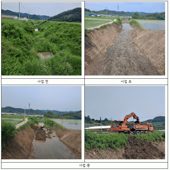 하천 퇴적토 준설사업은 하천의 통수 단면을 확보하여 유수 흐름의 정체를 해소하여 여름철 태풍.집중호우 등 자연재해로부터 군민의 생명과 재산을 보호하는 사업으로 매년 상반기, 하반기 등 주기적으로 실시하고 있다.
