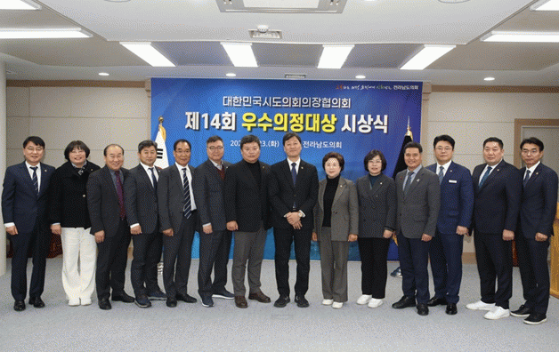 이번에 우수의정대상을 수상한 의원은 주종섭(여수6), 김회식(장성2), 김호진(나주1), 최정훈(목포4), 류기준(화순2), 김인정(진도), 손남일(영암2), 강정일(광양2), 최동익(비례), 정영균(순천1), 박현숙(비례), 장은영(비례), 박경미(광양4) 의원 등 13명으로, 서동욱 의장이 직접 상패를 전수했다.