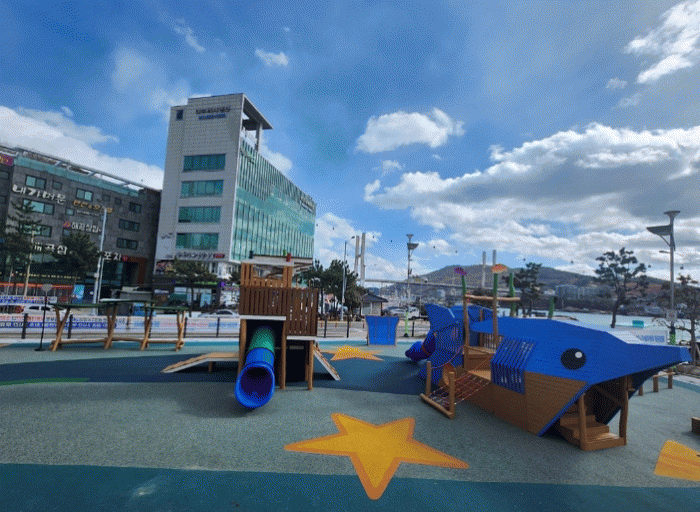 ‘어린이 해양테마 놀이터’는 해적선과 돌고래 조합놀이대 등 해양을 테마로 한 놀이시설과 그네, 짚라인, 사각네트 건너기 등 어린이들의 신체발달과 창의적이고 건강한 놀이를 즐길 수 있는 시설을 갖췄다.
