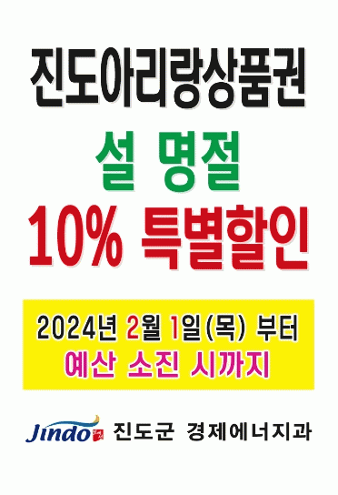 김희수 진도군수는 “상품권 할인 판매가 소비자의 가계 부담을 줄이고, 설 명절을 맞아 지역경제 활성화에도 도움이 되길 기대한다”고 말했다.