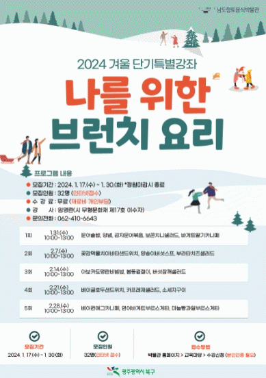 한편 남도향토음식박물관 관계자는 “겨울 특별강좌 운영이 마무리되면 이어서 3월부터 6월까지 2024년도 상반기 남도전통음식강좌와 식(食)문화프로그램 운영을 계획하고 있다”며 “수강생 모집은 오는 31일부터 시작되니 주민들의 많은 관심과 참여 부탁드린다”고 말했다.