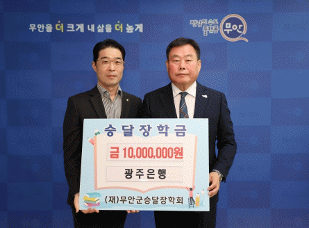 이날 기탁식에는 광주은행 영업 3본부 김종훈 부행장과 강효순 무안지점장이 참석하여 장학금을 기탁했다.