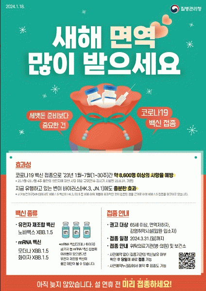 접종 가능한 백신은 현재 국내 및 전 세계적으로 유행 중인 변이에 맞춘 XBB.1.5 단가백신으로 화이자, 모더나, 노바백스 백신이다.