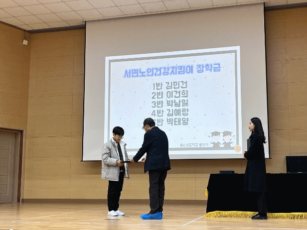서면 노인건강지킴이회는 3년째 회원들의 기금으로 장학금을 지원하고 있다. 학업성적이 우수하고 모범적인 학생을 선발하여 각 10만원의 장학금을 지원했다. 사회의 어른으로서 보람 있는 일을 하고자 지역 인재들에게 장학금을 지원하게 됐다.