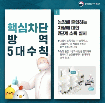 또한 “사육 중인 가금에서 폐사 증가, 산란율 저하 등 고병원성 조류인플루엔자 의심 주요 증상뿐만 아니라 가벼운 증상만 확인돼도 즉시 방역당국으로 신고해 달라”고 당부했다.