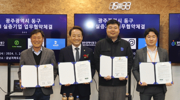 한편 동구는 이날 시연회 이후 AI 기반 실증 관련 제조사인 이지훈 ㈜써니팩토리 대표, 권귀태 ㈜위딧 대표, 오창렬 ㈜디와이스코프코리아 광주지사장과 함께 AI 산업과 지역 발전을 위한 업무협약을 체결하고 향후 관련 사업 추진을 위한 상호 협력에 뜻을 모았다.