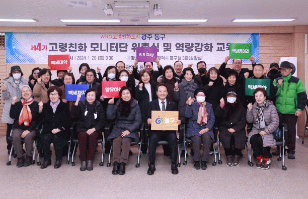 동구는 급속한 인구 고령화에 체계적으로 대응하고자 지난 2017년 광주·전남 최초로 세계보건기구가 인증하는 고령친화도시 국제 연대에 가입하고 생활 밀착형 복지정책 발굴을 위해 주민으로 구성된 ‘고령친화 모니터단’을 조직해 운영하고 있다.