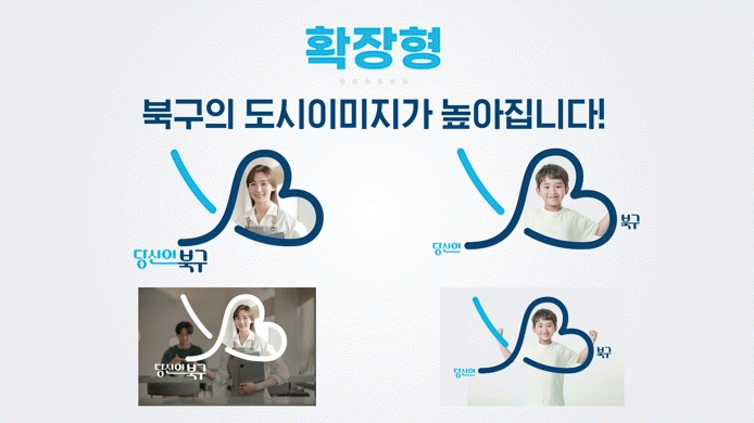 이번에 공개된 북구 도시브랜드 ‘당신이 북구’는 ‘당신’과 ‘북구’의 연결로 구민과 북구의 밀접한 관계성을 상징하고 하트모양의 디자인은 ‘You are Bukgu(당신이 북구 영문)’의 ‘Y’와 ‘B’를 결합해 구민을 향한 사랑과 미래의 부푼 기대감을 형상화했다.