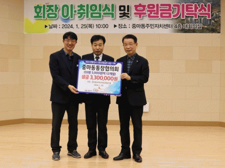 이와 함께 중마동 통장협의회는 독거노인, 한부모가정, 조손가정 등 어려운 이웃을 돕기 위해 (재)사랑나눔복지재단을 통해 중마동 지역사회보장협의체에 330만원의 후원금을 기탁했다.
