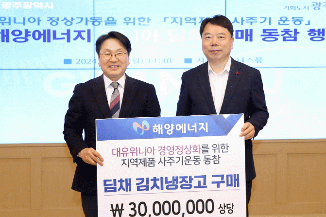 해양에너지는 지역제품 사주기 운동에 동참하기 위해 3000만원 상당의 위니아 딤채 김치냉장고를 구매했다. 사회복지관, 돌봄시설 등 지역사회에 전달하고, 일부는 직원 복지에 사용할 예정이다.
