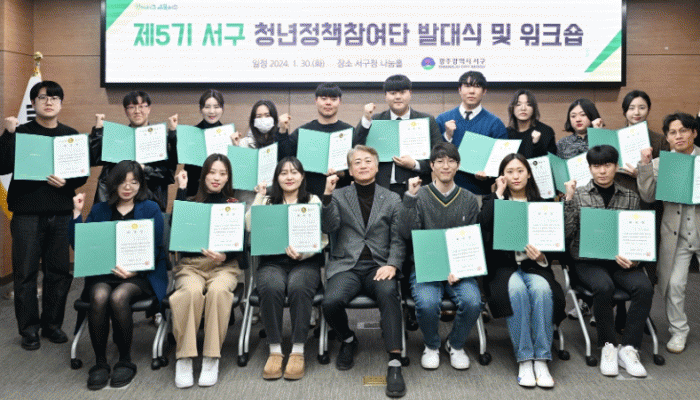 이번 5기 참여단은 서구에서 거주·활동하고 있는 19세 이상 39세 이하의 학생, 직장인, 자영업자 등 청년단원 25명으로 구성됐으며 ▲청년일자리 ▲청년자립기반 ▲청년문화예술 3개 분과로 나뉘어 2년 동안 활동하게 된다.