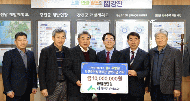 강진군민장학재단 이사장 강진원 군수는 “연초부터 소중한 장학금을 기탁해주신 강진군 산림조합 윤길식 조합장님께 진심으로 감사드린다”며 ”기탁받은 장학금은 지역사회를 이끄는 훌륭한 인재 양성을 위해 소중하게 사용하겠다“고 말했다.