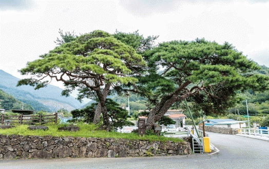멀리 푸른 백운산을 배경으로 유려하게 서 있는 용란송 곁에는 두 그루의 소나무가 대각선으로 어깨를 겯고 어우러져 고고하고 신비로운 장관을 연출한다.