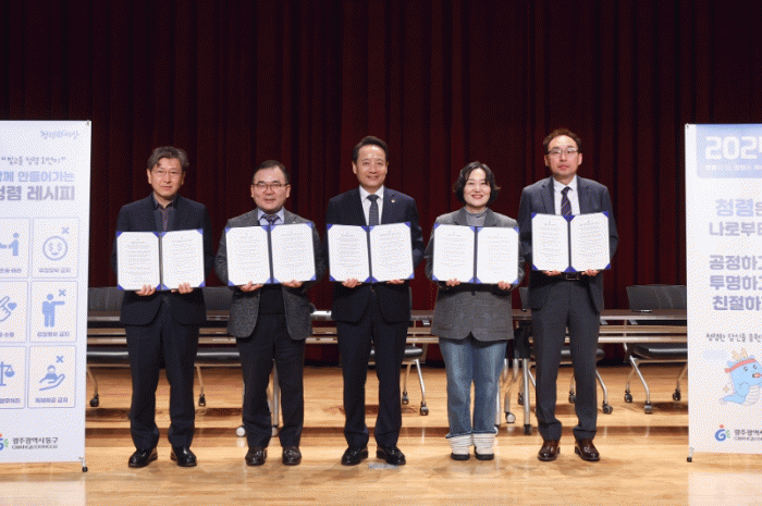 이번 서약식은 광주 유일 5년 연속 청렴 2등급을 달성한 동구가 그간의 성과를 바탕으로 ‘청렴 동구’ 실현에 박차를 가해 1등급 달성을 이루고자 힘찬 각오를 다지는 시간으로 마련됐다.