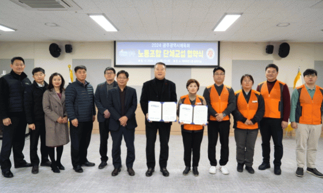 체결식에는 전갑수 회장, 공공연대노동조합 광주지부 서기정 부위원장, 홍기영 사무국장, 고평주 시 체육회 지부장 등이 참석했다.