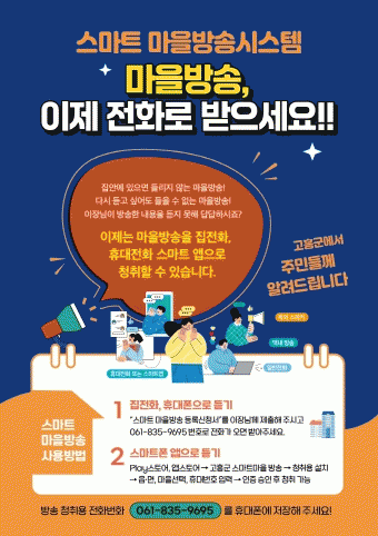 또한, 더 많은 군민이 스마트 마을방송시스템의 혜택을 받을 수 있도록 사용법이 담긴 홍보지를 제작·배부했으며 지속적으로 홍보를 진행할 계획이다.