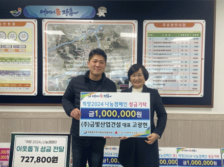 30일에는 고광현 ㈜금빛산업건설 대표가 이웃돕기 성금 100만원을 기탁했다.