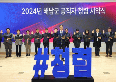명현관 군수의 특별 지시로 이뤄진 청렴 서약은 전체 해남군 공직자 1,271명 전원이 서약서에 서명하고, 이를 군민들에게 공표하는 시간을 가졌다.