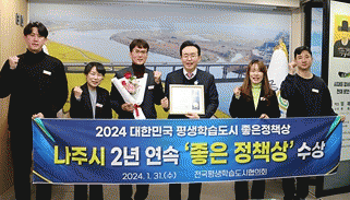 윤병태 나주시장은 “다양한 형태의 평생학습을 통해 청년이 살기좋은 도시, 창의적인 학습도시로 인식될 수 있도록 참신한 정책들을 지속 발굴해 나가겠다”고 말했다.