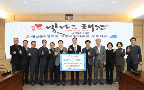올해 첫 상호기부에는 명현관 군수 50만원, 간부공무원 10명이 100만원 기부를 비롯해 기획실 소속 직원 21명이 210만원을 영덕군 고향사랑기부제에 기부했으며, 영덕군에서도 이에 화답해 360만원을 해남군에 기부했다.