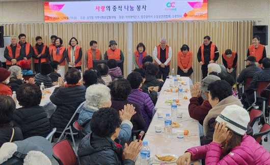 이번 활동은 라이온스클럽과 이기성 보장협의체 고문이 추운 겨울 마을어르신들에게 따뜻한 점심 한 끼를 대접하고자 후원을 통해 진행됐으며, 이날 행사는 노래공연과 함께 짜장면과 탕수육 등 중식요리를 당일 직접 만들어 제공했다.
