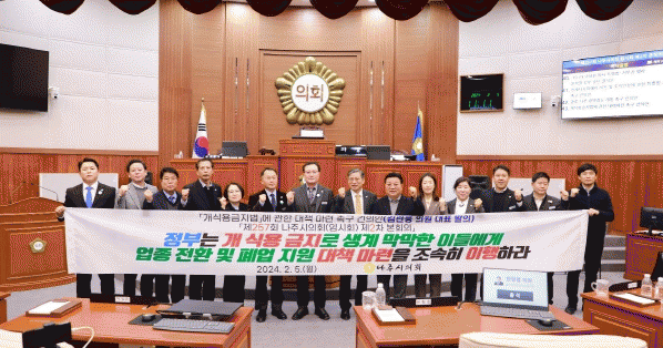 이번 건의안을 대표 발의한 김관용 의원은 ‘음식점 운영자들에게 업종 전환이 가능하도록 정부와 지자체가 솔루션을 직접 지원하고, 농장에서 사육중이 개들도 무단 도태되지 않도록 힘써야 한다’고 강조했다.