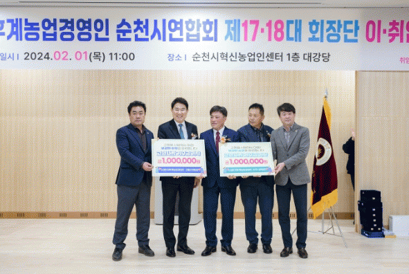 이번 기부는 한국후계농업경영인 순천시연합회장 이.취임식 행사를 기념하고 영호남 화합과 농업.농촌 경제 활성화를 위해 마련됐다.