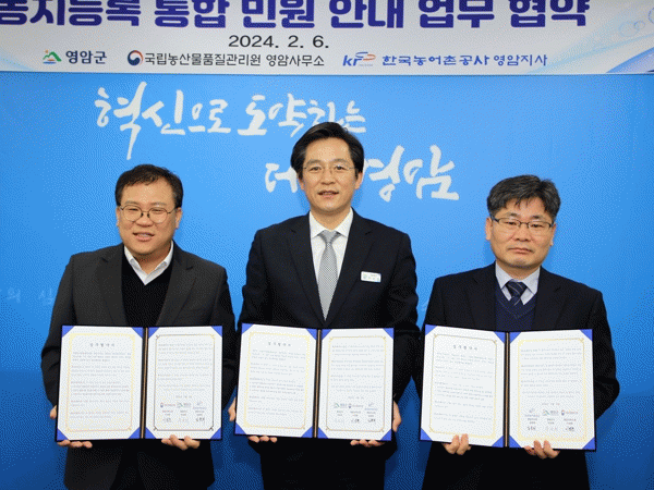 영암군과 두 기관은 이번 협약에 따라 농지등록 통합민원 안내문을 만들어 배포하고, 농업인의 이런 불편을 해소하는 물꼬를 트기로 했다.