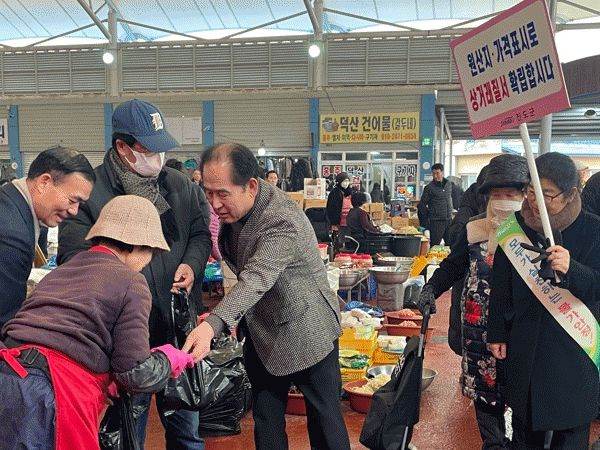 또한 시장에서 판매 중인 굴, 조기, 쏨뱅이, 장대, 병어 등의 수산물과 떡, 과일 등을 직접 구매하며 상인들의 애로사항을 청취하고 격려했다.