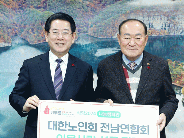 정양수 대한노인회 전남연합회장은 “전남도에서 노인복지에 대해 깊은 관심을 가져줘 항상 고마움을 갖고 있다”며 “노인회에서 정성스레 모은 성금이 형편이 어려운 노인들에게 조금이라도 보탬이 됐으면 좋겠다”고 말했다.